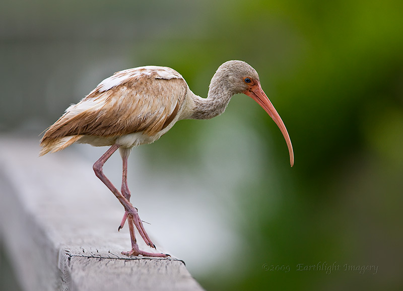 Juvenile White Ibis standing on the pier at the Leona Belle Turnbull Birding Center, 05-04-08. Snapped with a Canon 1Ds Mark III and a 500 mm f/4 IS prime with a 1.4x teleconverter.700 mm at f/5.6, 1/1000s, ISO 400