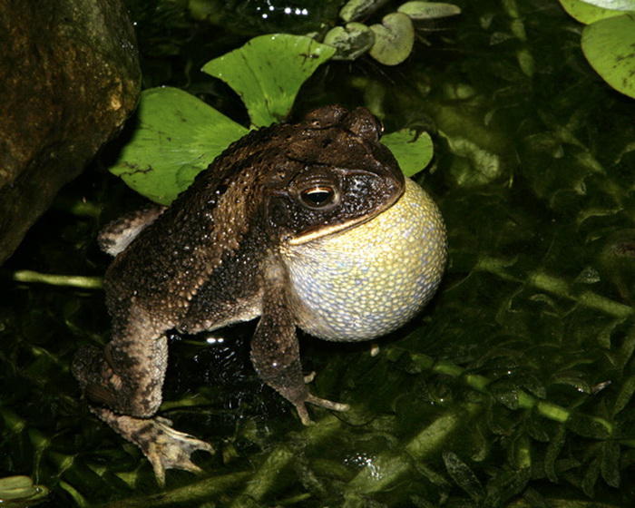 Gulf Coast Toad (Incilius valliceps) male, in breeding habitat, trilling, west of Wimberley, Hays County, Texas. August 19. 2007.